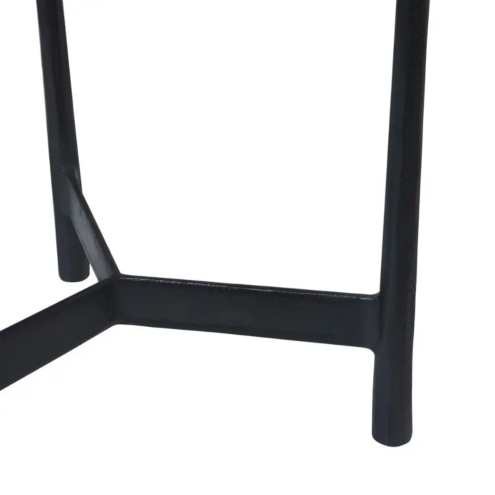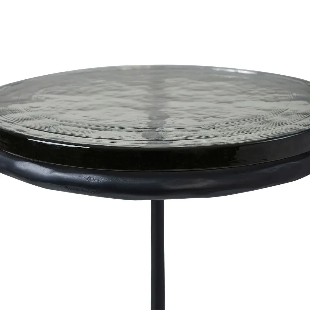 Whether decorating a room from scratch or just looking to inject a fresh new touch, the Avila side table has just what you need. Clean lines and classic materials team up to create a stunning accent end table that’s perfect for many styles of interiors. Sleek and sturdy cast aluminum is treated to a black plated finish and capped off with a smooth recycled tinted glass tabletop. Its three-legged design provides stability while ensuring a great-looking airy feel. Placed next to a lounge chair to create a cozy reading spot, or sofa-side as a living room accent table, this end table is ready to deliver style and convenience to your decorating project.