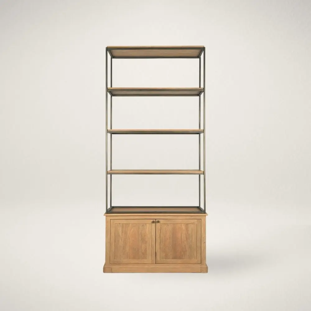 - Materials: Constructed from solid mango wood with a fine sandblasted, light brown finish complemented by dark, aged brass finished iron metal hardware