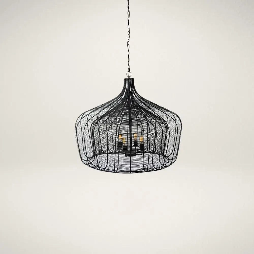 The Camila is a unique and stylish metal chandelier that will look great in any dining area, foyer or entrance. It features a central, candle style fixture contained within a flat black toned, meshed metal enclosure with gentle curves. The Camila uses four, 75-Watt standard E26 bulbs to cast a bright ambient glow. With its all-metal body, the Camila looks gorgeous in spaces based on the Industrial design style.