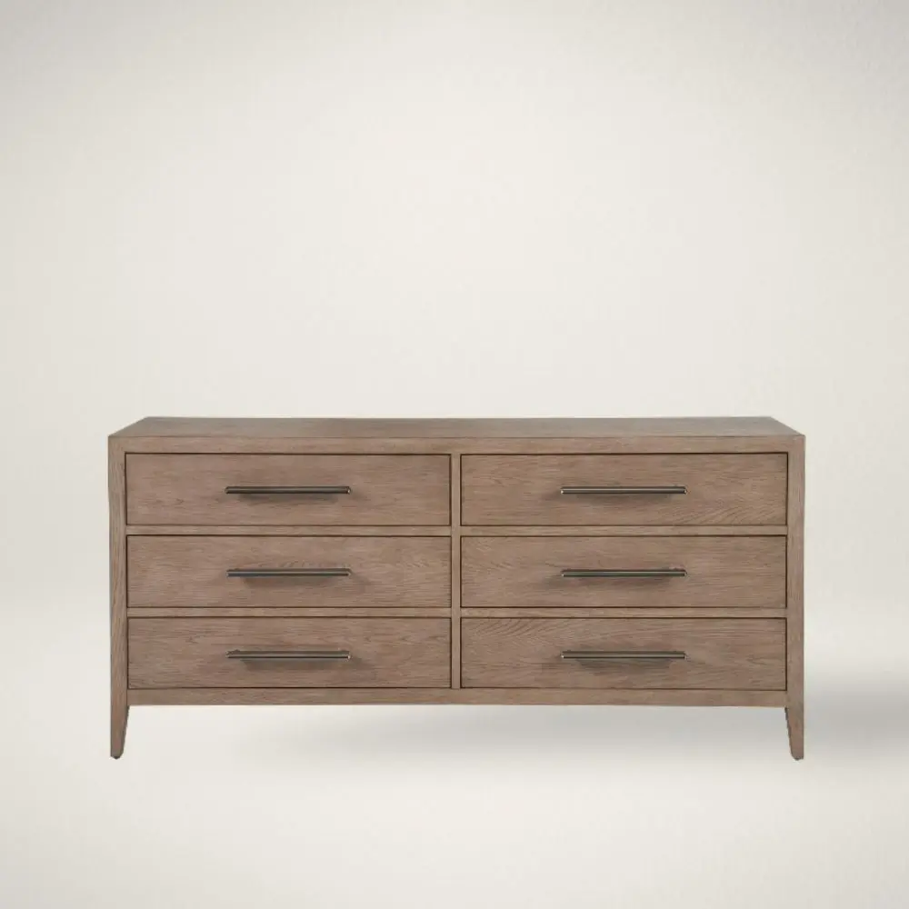 - 6 Drawers: Removable Gray felt lined jewelry tray in top Left and Right drawers