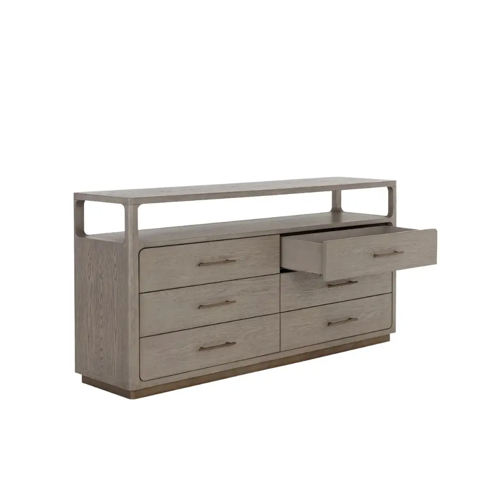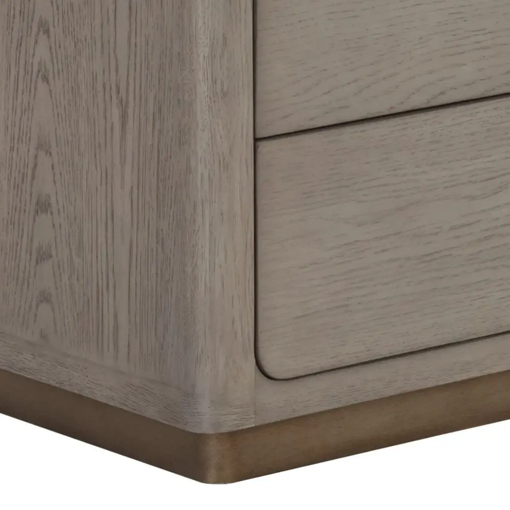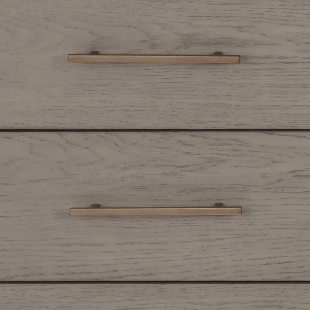 - Plinth base and drawer handles crafted from steel in a warm brass brushed finish.