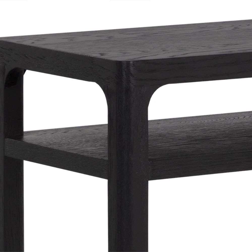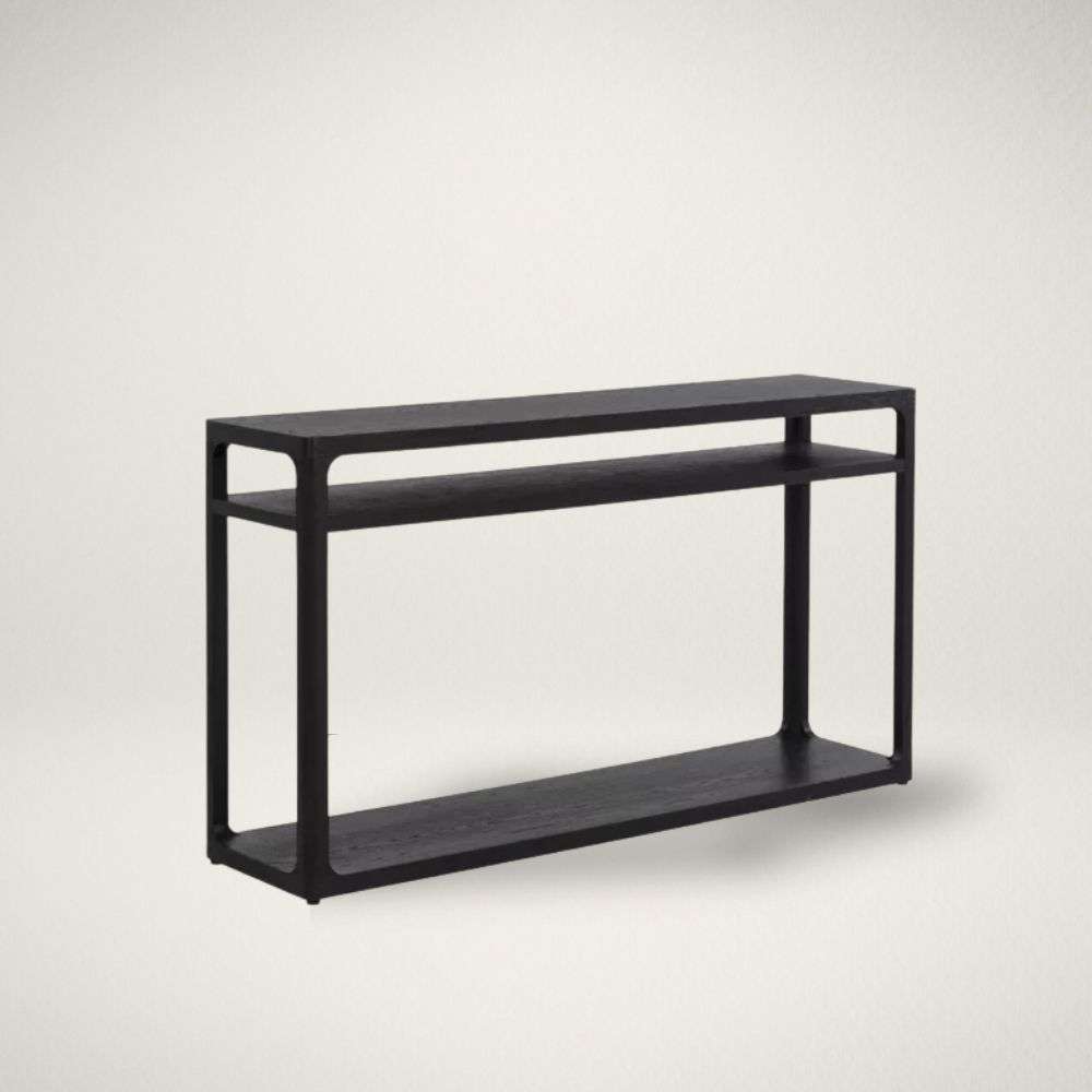 - Two open shelves for styling and storage