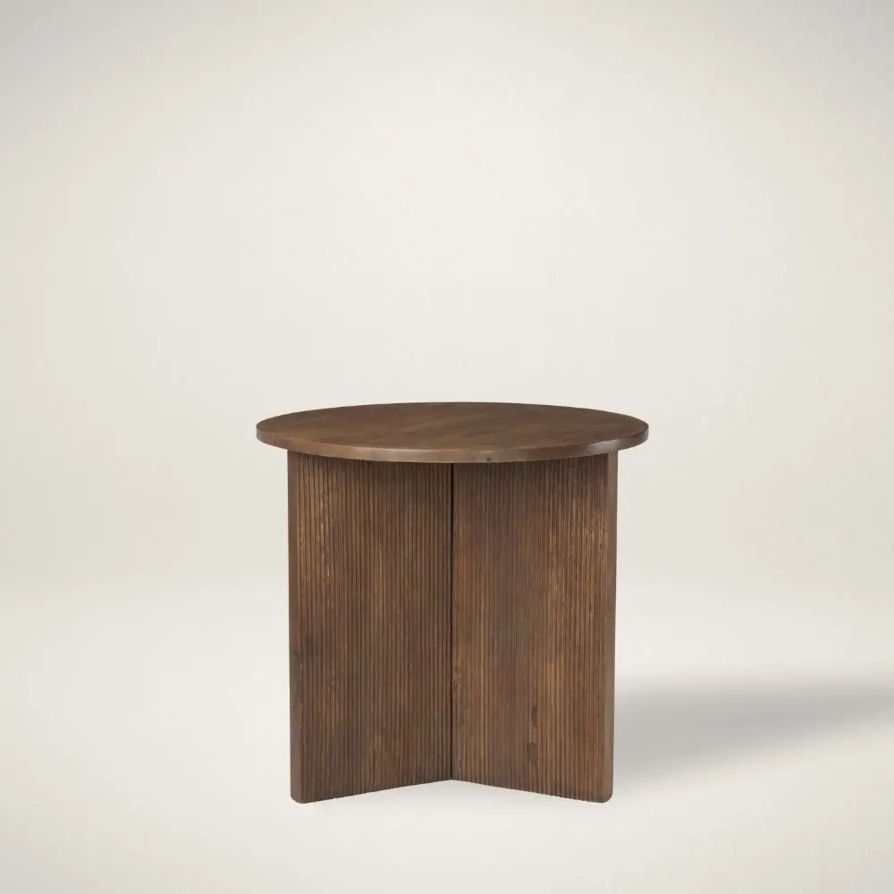 - Showcases a beautiful medium brown with three slim fluted wood legs