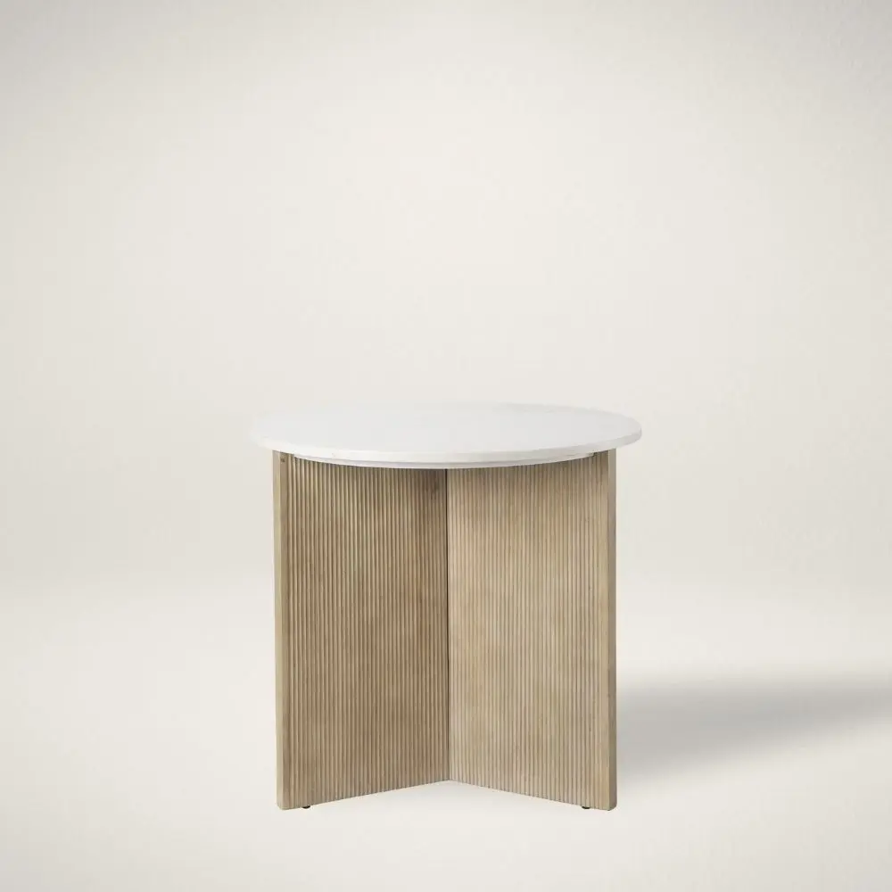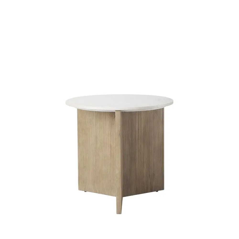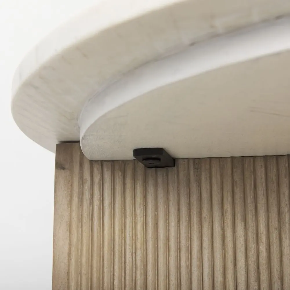 • The trendy fluted details of the legs can be seen from all angles and supports a beautiful, round white marble tabletop