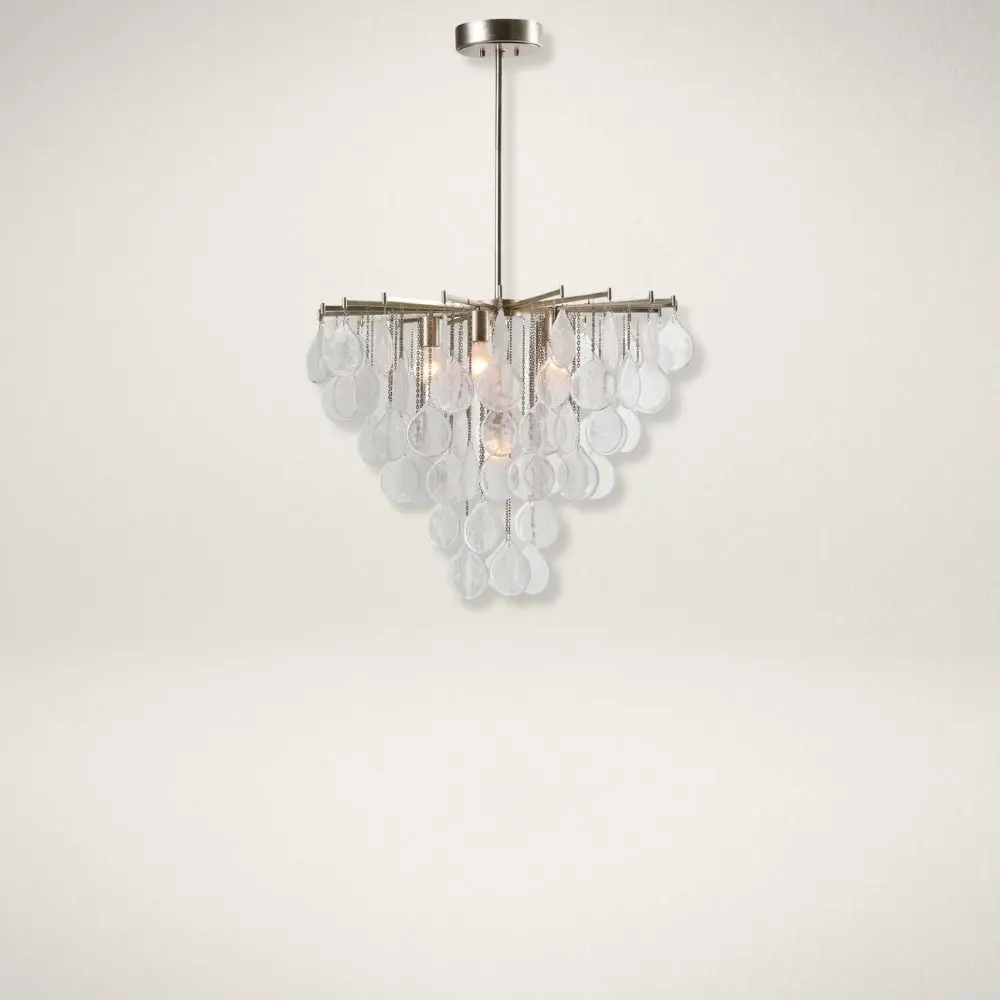 - Features cascading hand-crafted glass drops for a shimmering effect