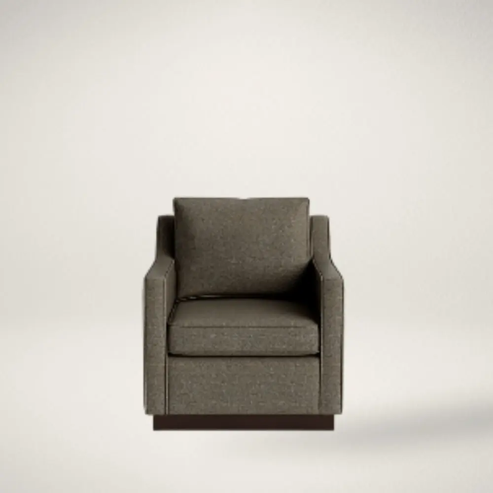 This contemporary armchair blends tailored elegance with everyday comfort, featuring clean lines, gently flared arms, and a textured, mocha-hued fabric that adds warmth to any space. Perfect for both modern and transitional interiors, its structured silhouette is grounded by a solid wood base, making it a versatile accent for living rooms, reading nooks, or bedroom corners. Designed for both form and function, this chair invites you to relax in style without compromising on sophistication.