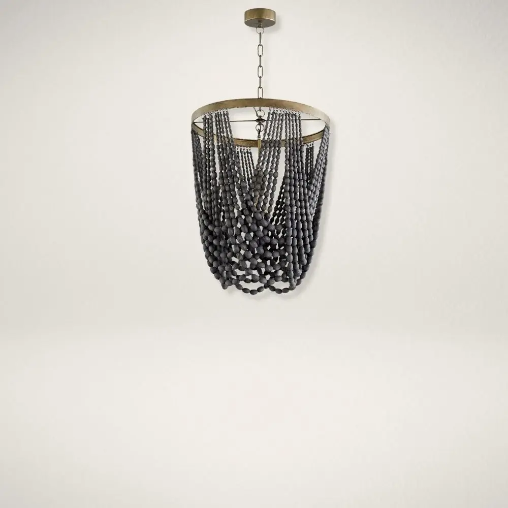 The Hammock Pendant possesses a single gilded frame with dark monochromatic beads that make up its impermanent body. The Hammock Pendant is perfect for any formal space.