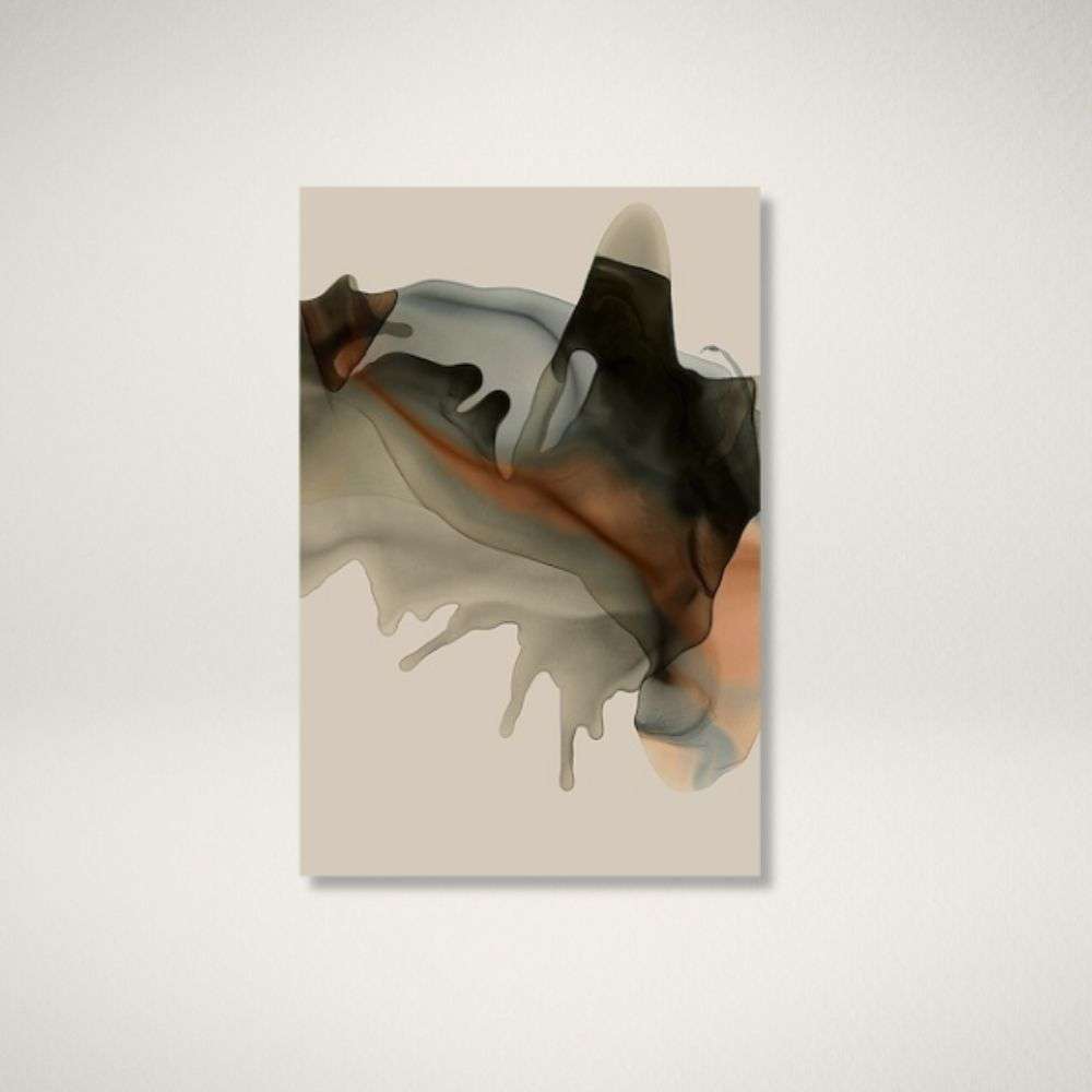 Leftbank Icelandic Rivers is a captivating abstract piece inspired by the natural flow and movement found in water and landscape formations. Layered tones of deep charcoal, soft taupe, and warm amber drift across a neutral backdrop, creating a sense of motion that feels both raw and refined.