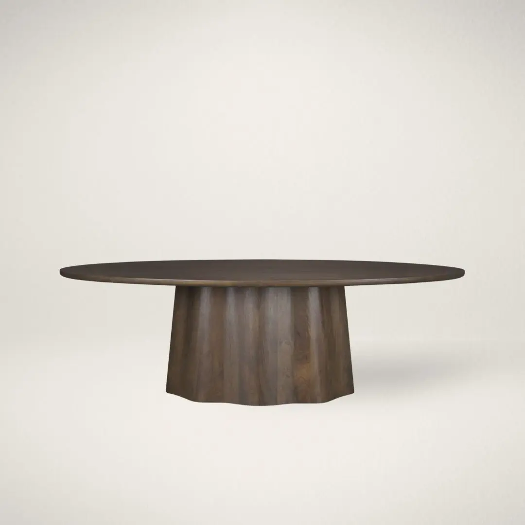 - Striking pedestal base showcases unique scalloped waves and rippled aesthetics, creating a dynamic, curvilinear form that evokes organic beauty
