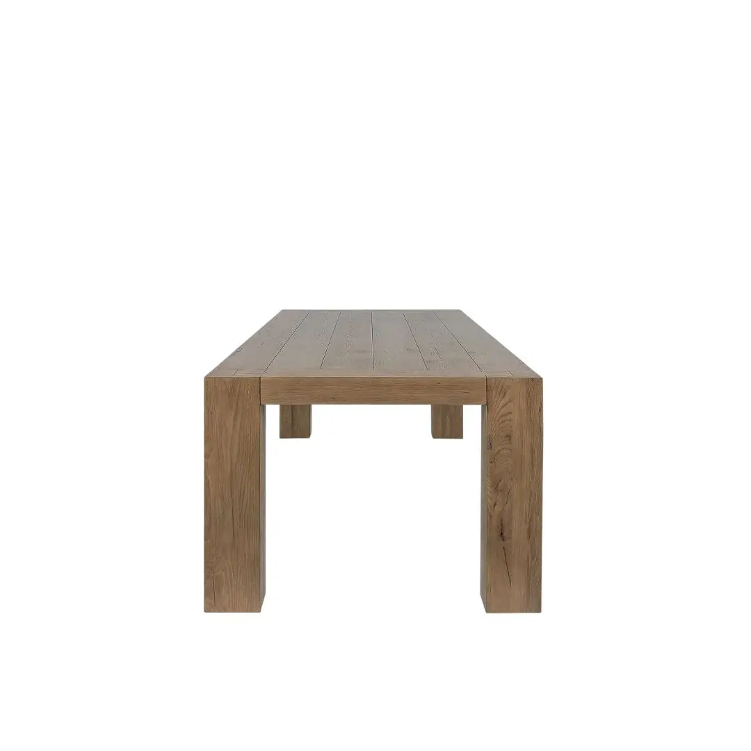 The Kingston Dining Table is a masterpiece of sustainable elegance. Crafted from FSC-certified reclaimed oak, it features bold block legs that emphasize its sturdy design and timeless appeal. Showcasing the natural beauty of the wood’s grain and texture, this table is perfect for hosting gatherings, adding eco-conscious sophistication to any dining space.