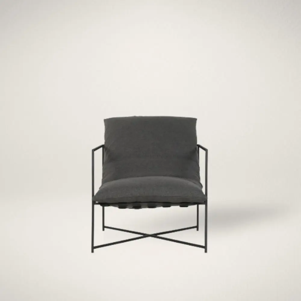 - Deep charcoal cushions with sink-in softness