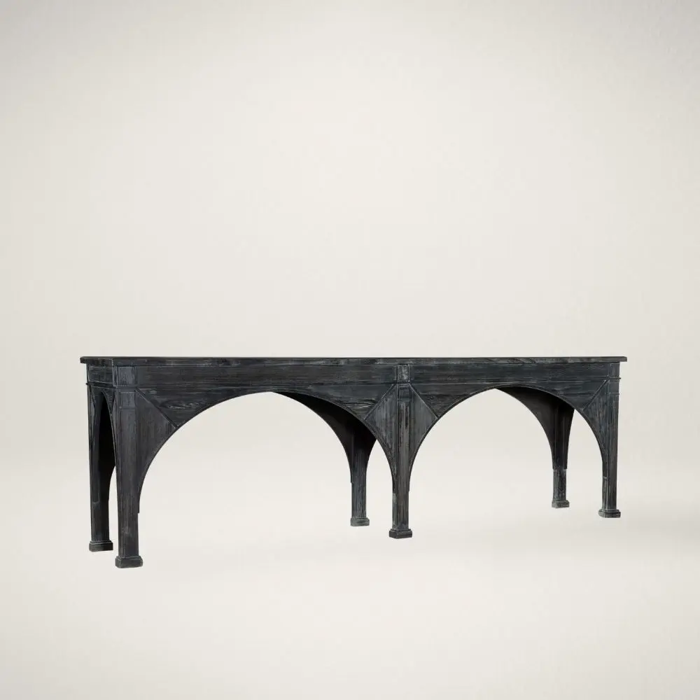 Medieval meets metropolitan in this modern console with classical and vintage design elements. In a convenient rectangle shape, the table is crafted of rustic pine veneers with a dark charcoal finish. Come closer to Melange, and you will discover something unexpected. An eclectic blending of colors, textures, and materials in a vibrant collection of one-of-a-kind artistic pieces, Melange is meant to inspire you and fuel an experience of self discovery, inspiring a renaissance in your home. Each piece of Melange has its own story. The designs are versatile and timeless, easily transcending from one life stage to the next, from home to home and generation to generation.