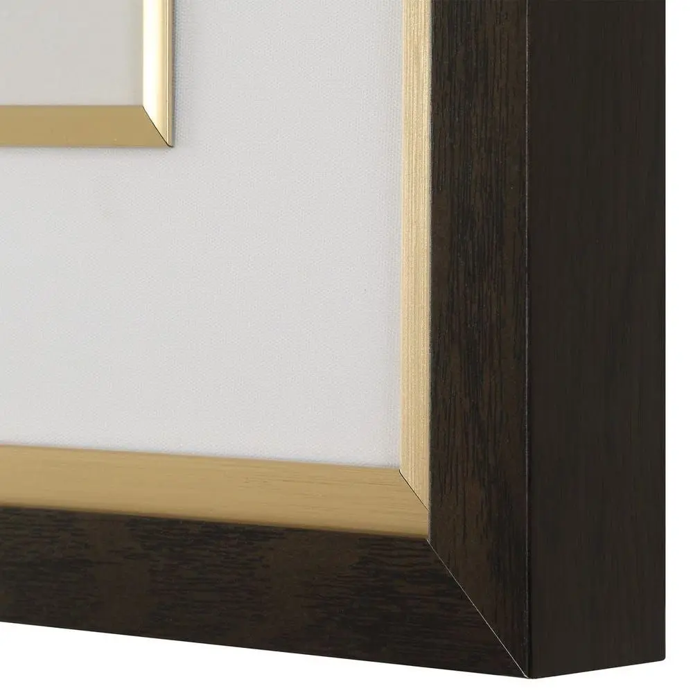 - Dark wood frames with gold inner detail