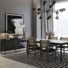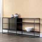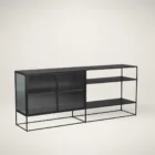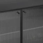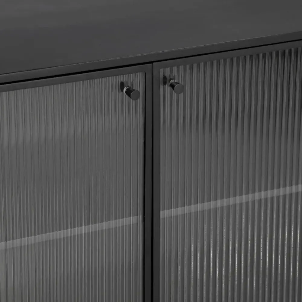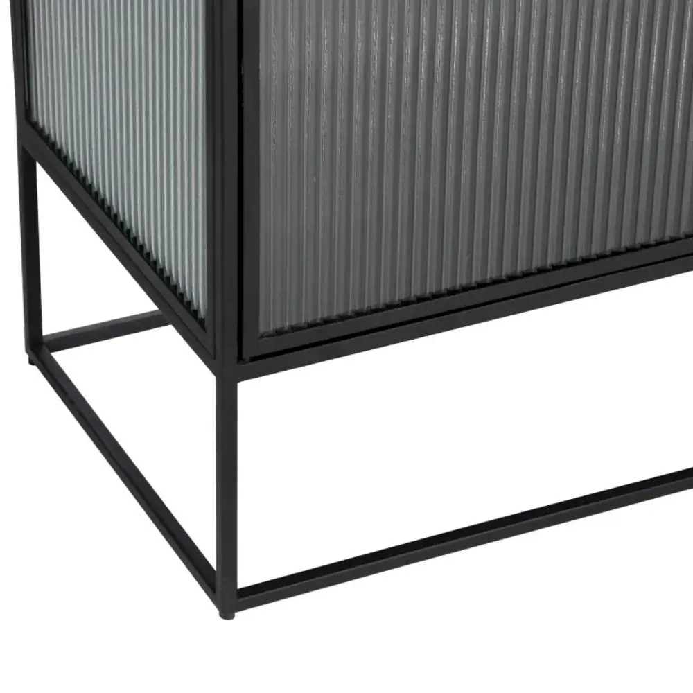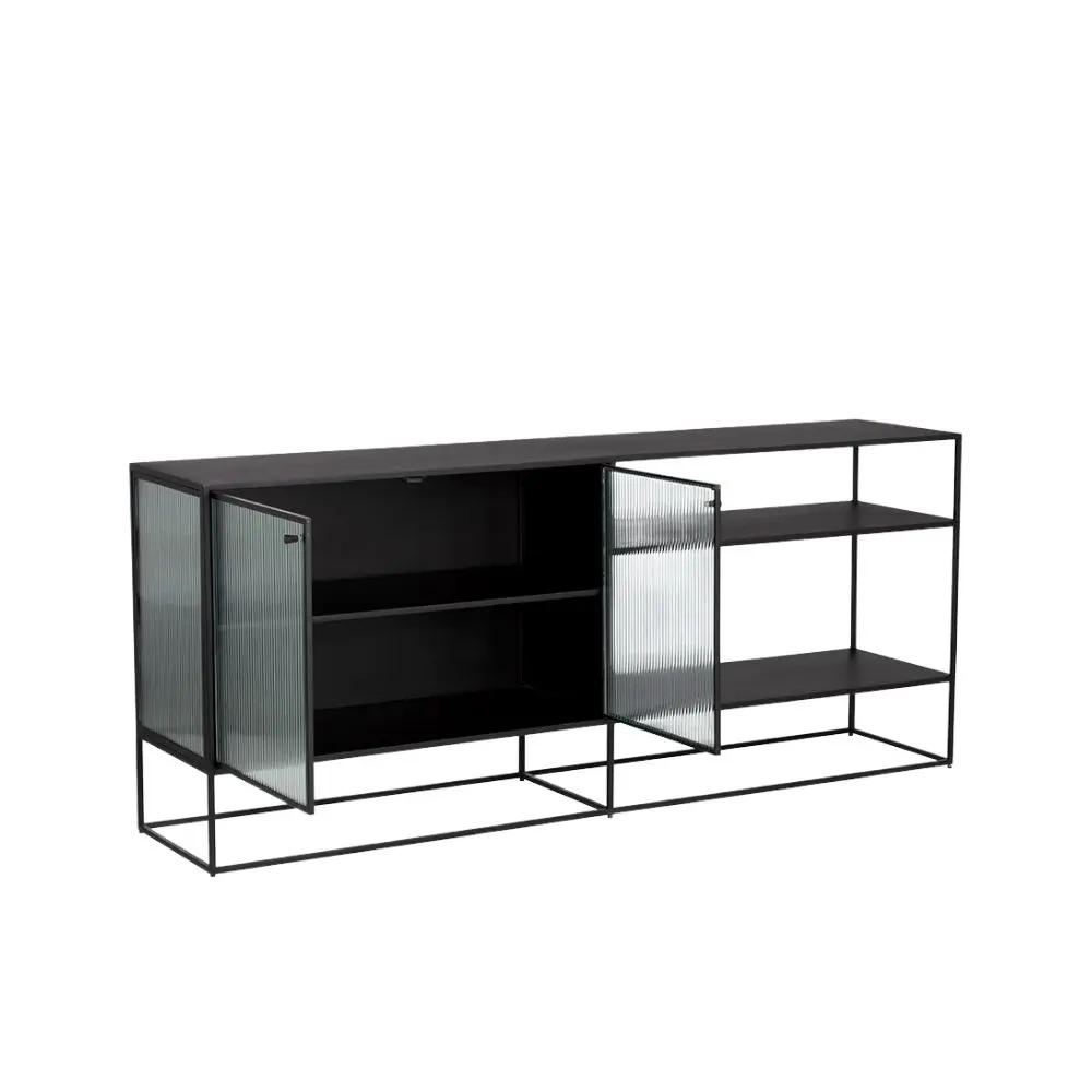 Inspired by mid-century modern designs, this large sideboard evokes a timeless and minimalist style. Crafted with a matte black iron frame and features fluted glass doors.