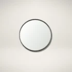 A simple round metal mirror featuring an antique black frame with a brushed silver finish