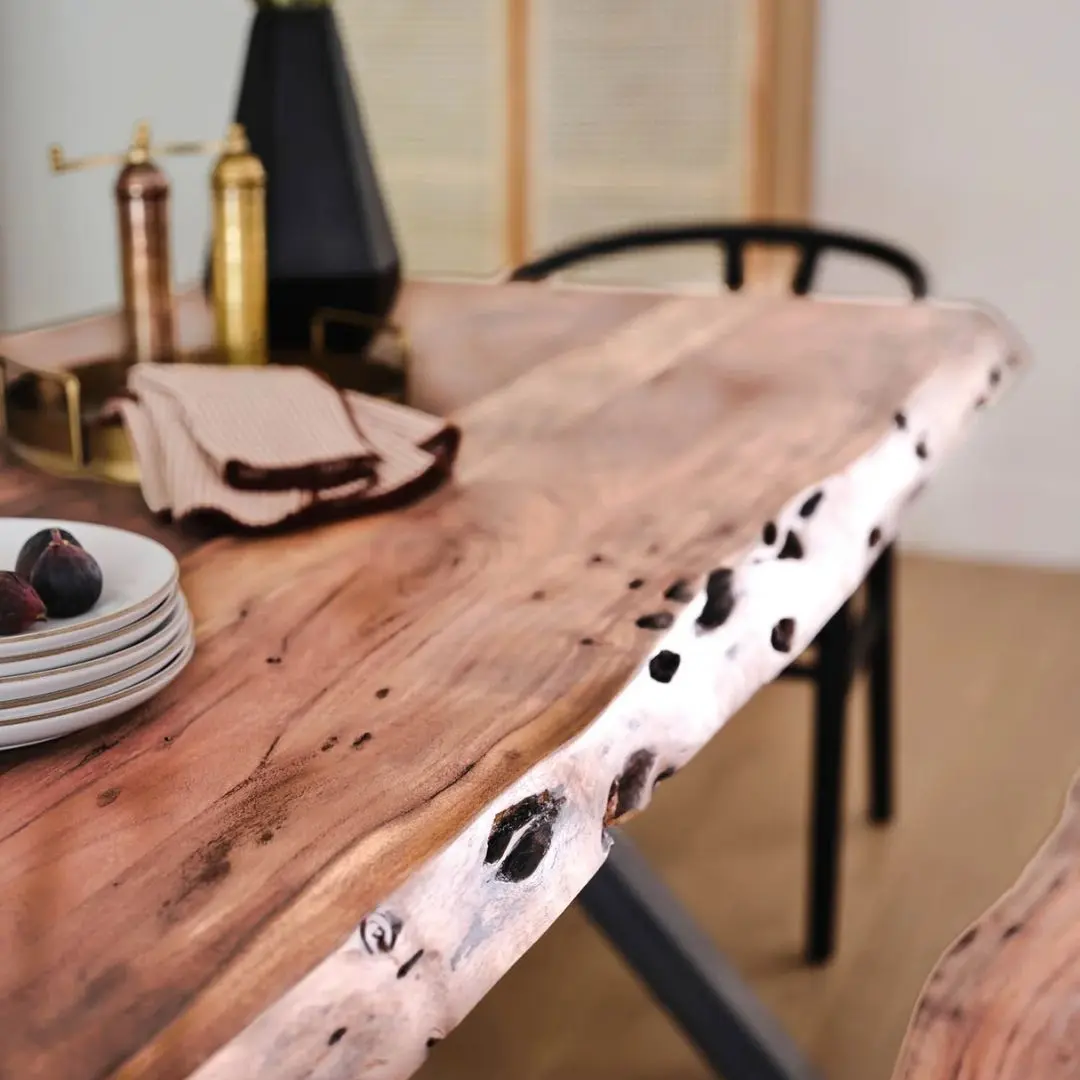 • Featuring elegant curves, natural knots, and live edges that vary between 1.5 to 3 inches, every item is a true one-of-a-kind piece that celebrates the artistry of solid wood craftsmanship.