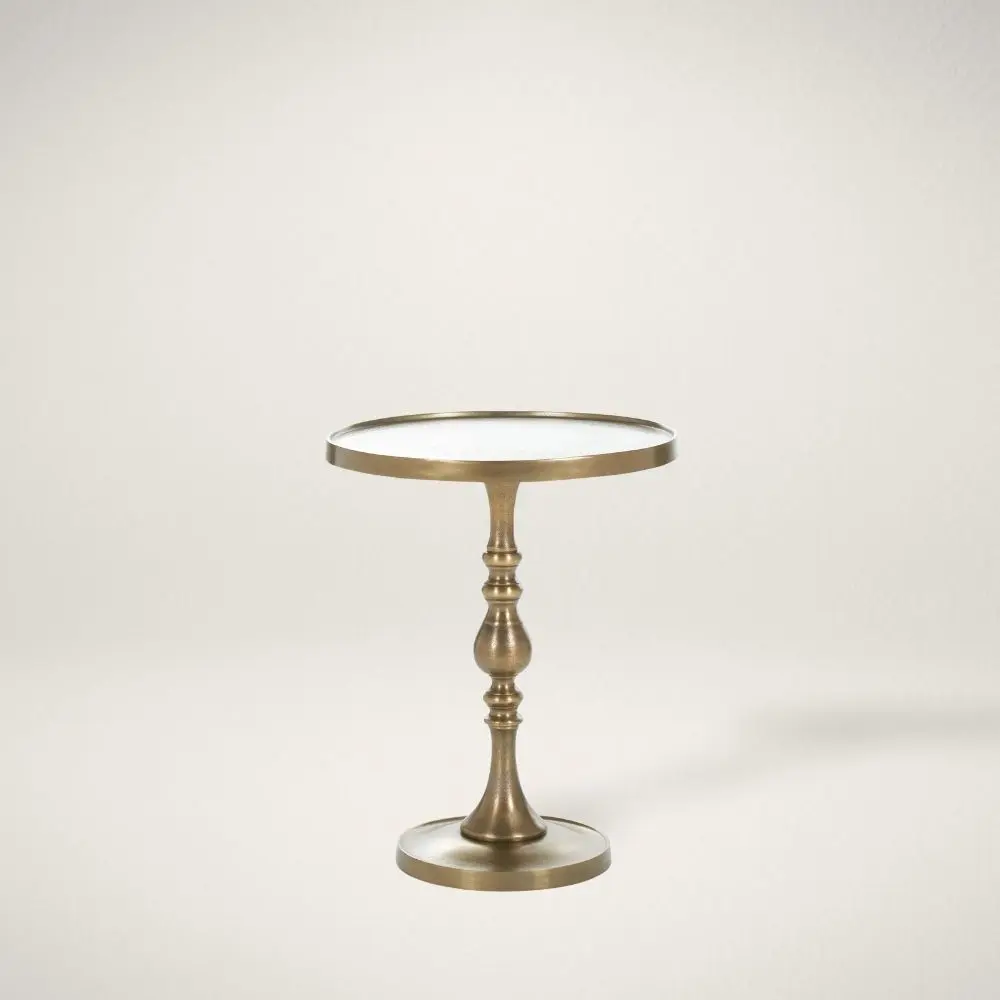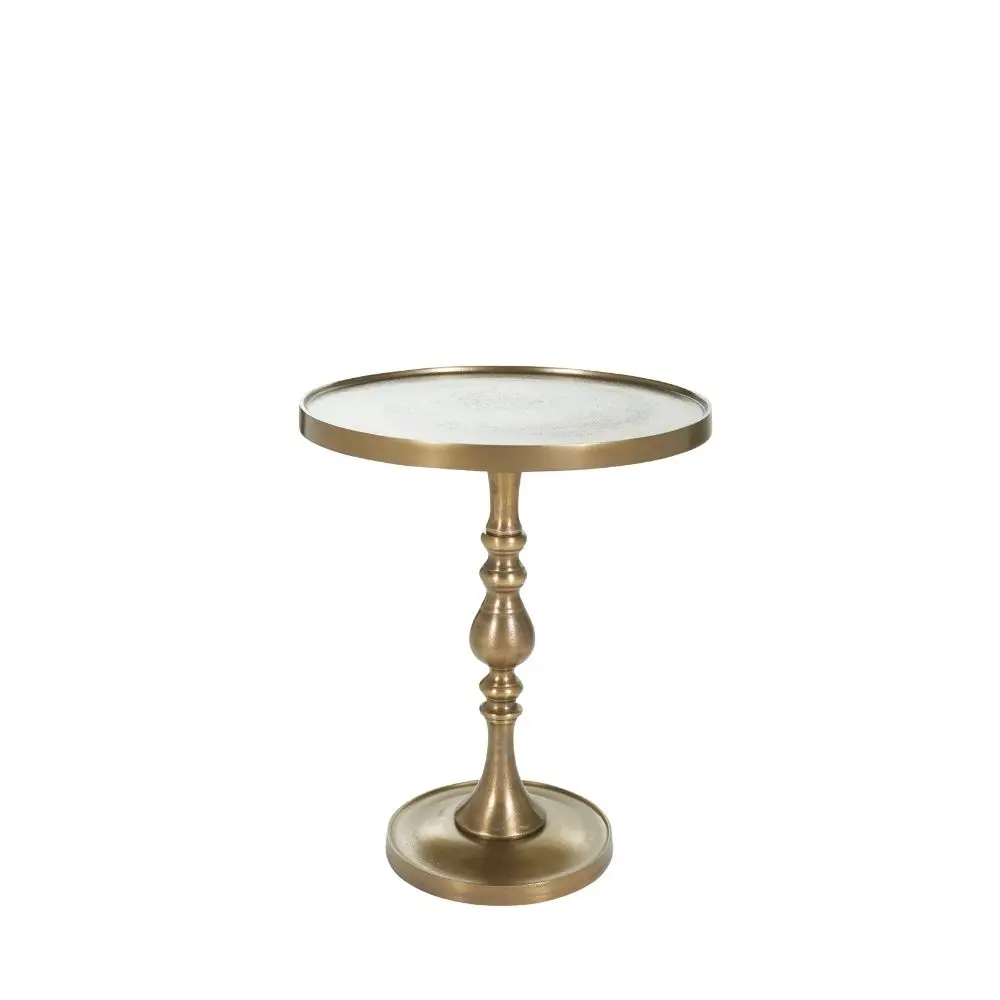 The Renwil Romina Brass Side Table is a statement piece that combines functionality with refined style. Crafted in an antique brass finish, this accent table features a round top with a raised edge and a sculpted pedestal base that highlights classic detailing. Perfect as a drink table or an accent beside a sofa or chair, the Romina Brass offers both practicality and visual impact. Ideal for transitional and modern interiors alike, this piece elevates the aesthetic of any room.