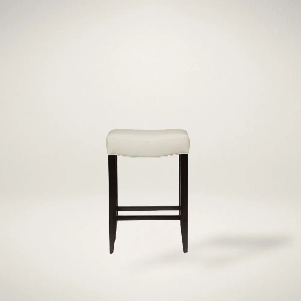 This sleek and sophisticated counter-height stool features a gently curved, cream-toned upholstered seat that offers both comfort and elegance. Supported by tapered solid wood legs in a rich espresso finish, the stool combines clean lines with timeless style, making it a versatile addition to any kitchen island or home bar. Its minimalist design and quality craftsmanship reflect a refined, modern aesthetic perfect for both contemporary and transitional interiors