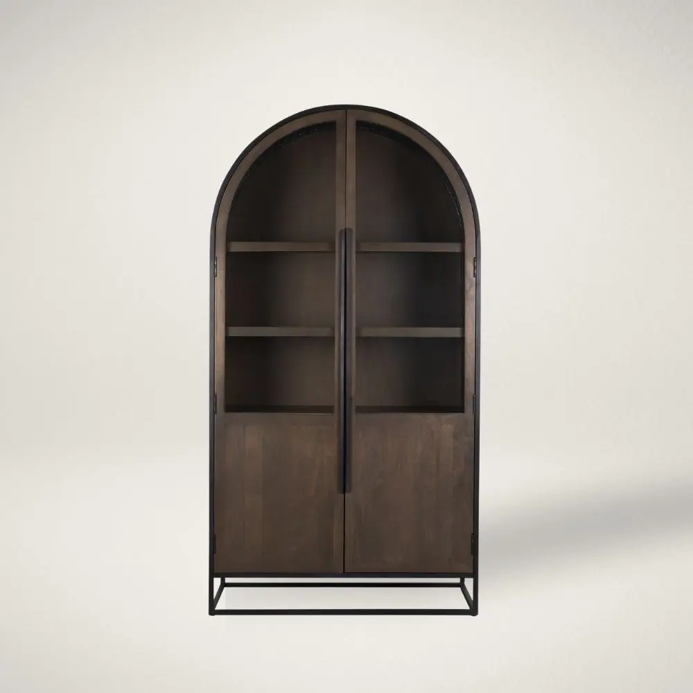 The Sloan Arched Cabinet combines sculptural beauty with practical storage, creating a statement piece that feels both modern and timeless. Crafted from solid mango wood, iron, and tempered glass, its arched frame, two-tone finish, and mixed-material design bring striking visual interest to any space. Display your treasured pieces behind the top glass doors, while the solid wood doors below keep everyday essentials neatly out of sight.