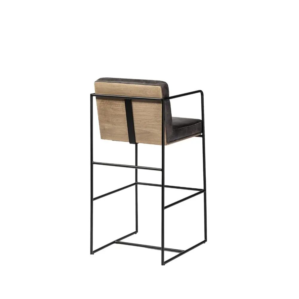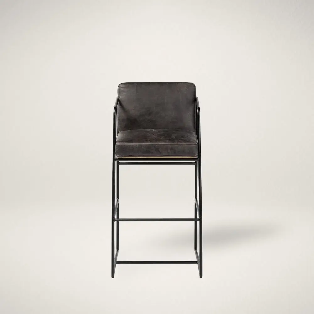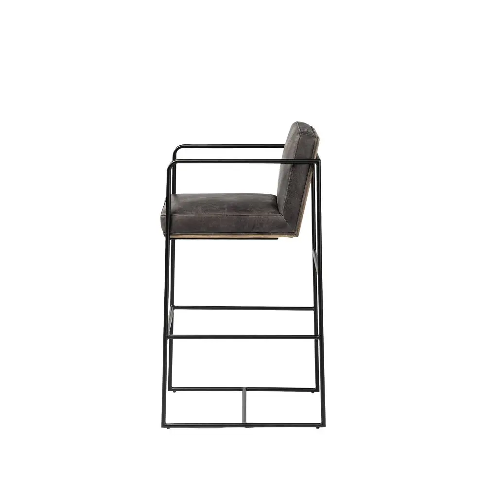 - Cushioned seat wrapped in ebony-toned genuine leather, makes for comfortable bar seating and enticing addition to any space and setting.